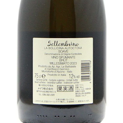 他の画像を見る 【春の陽気を思わせる爽やかさ満点!】 セッテンブリーノ ソアーヴェ スプマンテ 2023 レ バッティステッレ スパークリング 定価 ¥ 3,630 のところ 価格 ¥ 3,025 税込 会員特別価格 ¥ 3,025 税込 ソアヴェ カートに入れる お気に入りに登録する