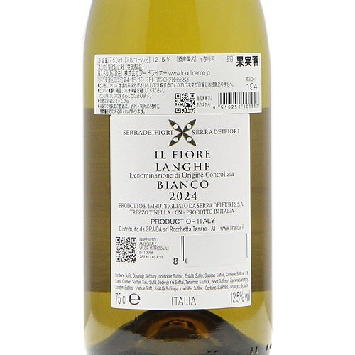 他の画像を見る 【豊かな花のアロマが独自の個性】 イル フィオーレ 2024 ブライダ 白ワイン 定価 ¥ 3,850 のところ 価格 ¥ 3,212 税込 会員特別価格 ¥ 3,212 税込 カートに入れる お気に入りに登録する