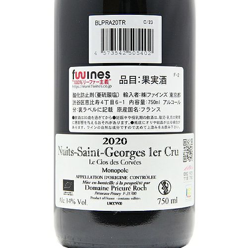 原語表記Nuits Saint Georges 1er Clos Des Corvees Vieilles Vignes Prieure Roch