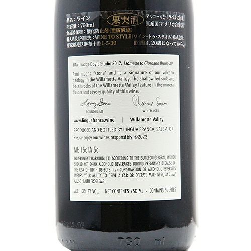 原語表記Lingua Franca AVNI Pinot Noir Willamette Valley