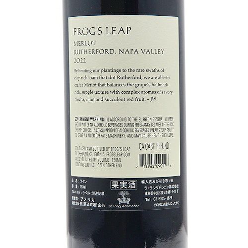 他の画像を見る 【「ミスター・メルローがケースで買っていくよ!」】 フロッグス リープ メルロー ラザフォード ナパ ヴァレー 2021 or 2022 かえる カエル 赤ワイン 定価 ¥ 10,120 のところ 価格 ¥ 8,437 税込 会員特別価格 ¥ 8,437 税込 食用カエル 蛙 カエルが跳ねる カートに入れる お気に入りに登録する