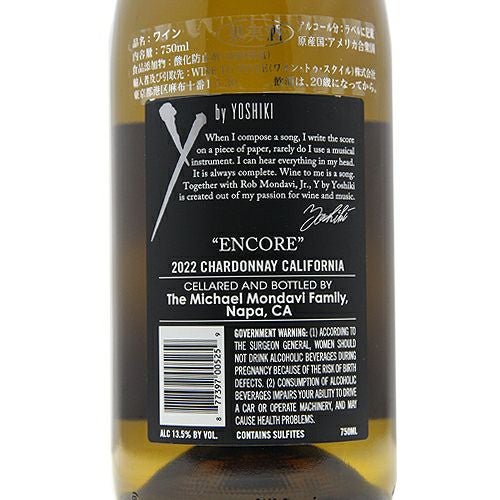 他の画像を見る 【X-JAPAN Yoshikiの『スマートカジュアル』】 Y by Yoshiki “アンコール” シャルドネ カリフォルニア 2024 正規品 白ワイン 定価 ¥ 7,150 のところ 価格 ¥ 5,720 税込 会員特別価格 ¥ 5,720 税込 カートに入れる お気に入りに登録する