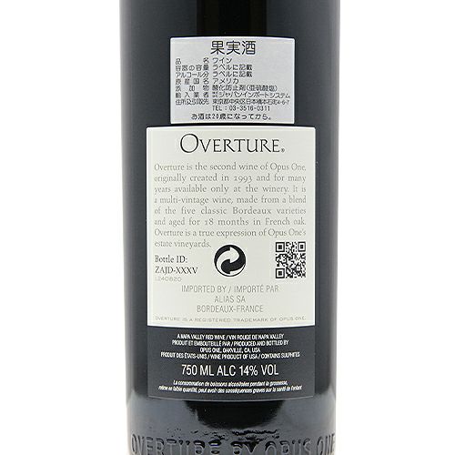 他の画像を見る 【オーパスワンより希少な「序曲」!】 オーヴァーチュア NV (2021年リリース) 赤ワイン 定価 ¥ 0 のところ 価格 ¥ 33,440 税込 会員特別価格 ¥ 33,440 税込 在庫切れ オーバーチュア オーバーチャー セカンドワイン 詳細を見る お気に入りに登録する