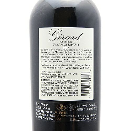 他の画像を見る 【アーティスティックに表現するナパ・ヴァレー】 ジラード アーティストリー ナパ ヴァレー 2021 赤ワイン 定価 ¥ 8,580 のところ 価格 ¥ 7,150 税込 会員特別価格 ¥ 7,150 税込 在庫切れ 詳細を見る お気に入りに登録する