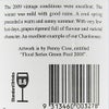 アート・シリーズ・シャルドネ2009は、スイカズラ、トロピカルフルーツ、ネクタリンの素晴らしい香りに、ピンクグレープフルーツとオールスパイスのニュアンスが加わっている。フルボディで豊かな果実味を持ち、この若い段階で驚くほど調和がとれており、やや高めの酸が熟した表情豊かな果実味とバランスをとっている。フィニッシュは長く、トロピカルフルーツの香りが層をなす。今飲んでも美味しいが、2020年以上まで熟成させるべきワイン。