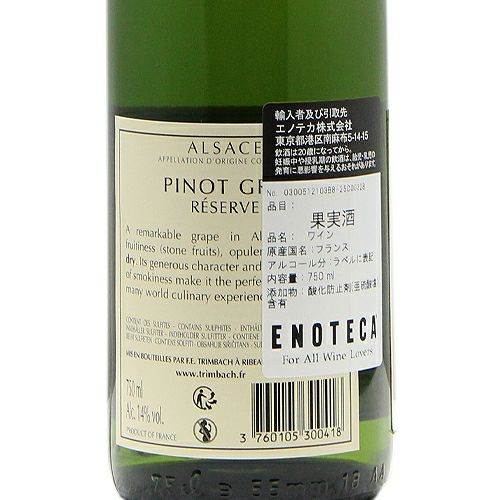他の画像を見る 【ちょっと熟成が美味しさのヒケツ】 トリンバック ピノ グリ レゼルヴ 2018 白ワイン 定価 ¥ 0 のところ 価格 ¥ 3,663 税込 会員特別価格 ¥ 3,663 税込 カートに入れる お気に入りに登録する