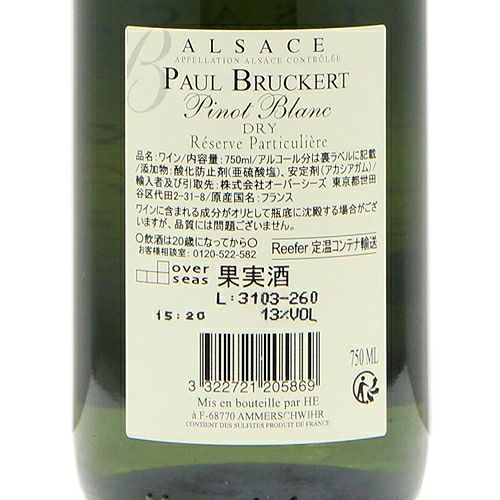 他の画像を見る 【アルザスでこの価格は優秀!】 ピノ グリ レゼルヴ パルティキュリエール 2022 ポール ブルケール 白ワイン 定価 ¥ 2,750 のところ 価格 ¥ 2,145 税込 会員特別価格 ¥ 2,145 税込 カートに入れる お気に入りに登録する