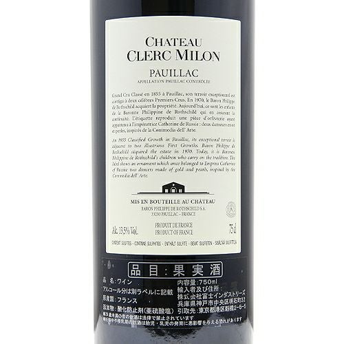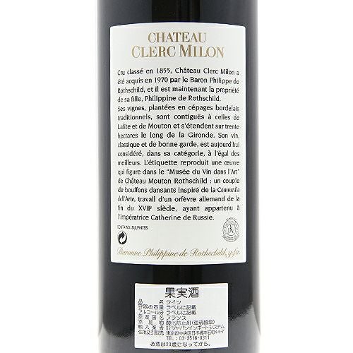 他の画像を見る 【パーカーポイント94+点】 シャトー クレール ミロン 2016 赤ワイン 定価 ¥ 0 のところ 価格 ¥ 23,870 税込 会員特別価格 ¥ 23,870 税込 カートに入れる お気に入りに登録する