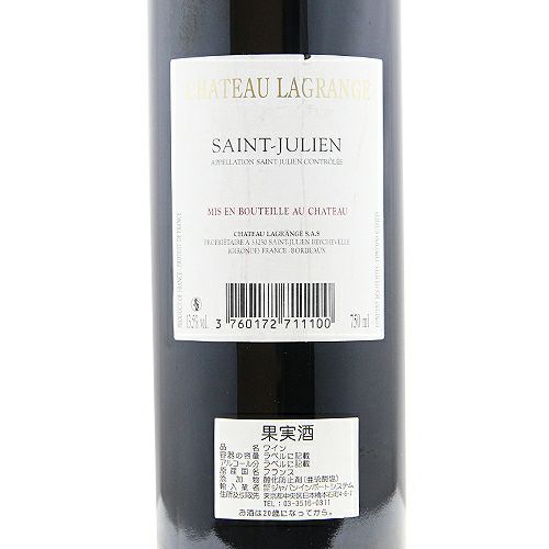 他の画像を見る 【パーカーポイント90点】 シャトー ラグランジュ 2010 赤ワイン 定価 ¥ 0 のところ 価格 ¥ 18,370 税込 会員特別価格 ¥ 18,370 税込 カートに入れる お気に入りに登録する