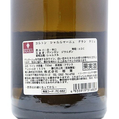 他の画像を見る 【パーカーポイント93点】 コルトン シャルルマーニュ グラン クリュ 2019 ヴァンサン ジラルダン 白ワイン 定価 ¥ 49,500 のところ 価格 ¥ 44,000 税込 会員特別価格 ¥ 44,000 税込 在庫切れ 詳細を見る お気に入りに登録する