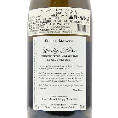 他の画像を見る 【地区が変わっても名生産者の品質!】 プイィ フュイッセ 2019 エスプリ ルフレーヴ 白ワイン 定価 ¥ 0 のところ 価格 ¥ 12,980 税込 会員特別価格 ¥ 12,980 税込 カートに入れる お気に入りに登録する