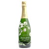 華やかなラベルの多いシャンパンの中でも、緑やピンクのボトルに映えるこの白い花はひと際目を引きます。