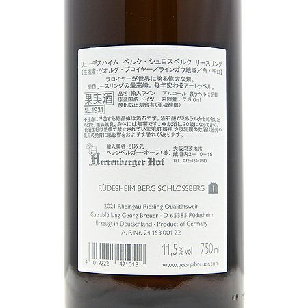 他の画像を見る 【パーカーポイント95+点】 ゲオルク ブロイヤー ベルク シュロスベルク リースリング 2021 白ワイン 定価 ¥ 31,900 のところ 価格 ¥ 27,940 税込 会員特別価格 ¥ 27,940 税込 ゲオルグ シュロスベルグ カートに入れる お気に入りに登録する