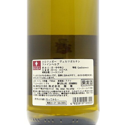 他の画像を見る 【ちょい甘&低アルコールで"飲みやすい"!】 ユルツィガー ヴュルツガルテン リースリング ファインヘルプ 2023 カール エルベス クヴァリテーツヴァイン ハルプトロッケン 白ワイン 定価 ¥ 2,420 のところ 価格 ¥ 2,024 税込 会員特別価格 ¥ 2,024 税込 カートに入れる お気に入りに登録する