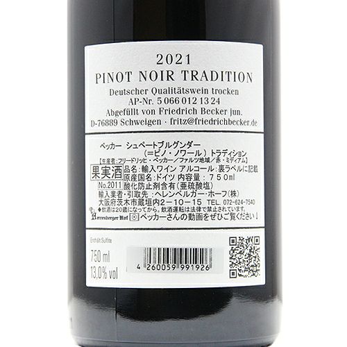 他の画像を見る 【ちょっといいことあったときの一人飲み♪】 ベッカー シュペートブルグンダー トラディション 2021 赤ワイン 定価 ¥ 5,500 のところ 価格 ¥ 4,730 税込 会員特別価格 ¥ 4,730 税込 カートに入れる お気に入りに登録する