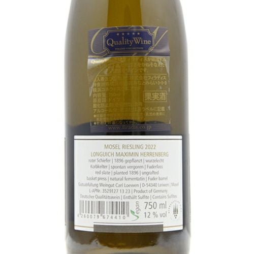 他の画像を見る 【高いワインからなくなっていきます!】 マクシミン ヘレンベルク 1896 ブラック ラベル 2022 カール ローウェン 白ワイン 定価 ¥ 10,670 のところ 価格 ¥ 10,450 税込 会員特別価格 ¥ 10,450 税込 カートに入れる お気に入りに登録する