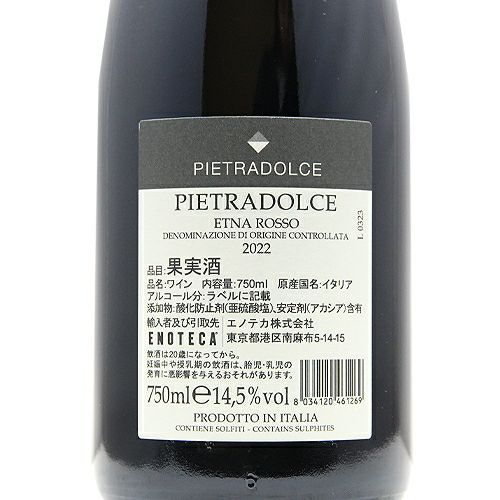 他の画像を見る 【エレガントでエネルギッシュ】 ピエトラドルチェ エトナ ロッソ 2022 赤ワイン 定価 ¥ 3,960 のところ 価格 ¥ 3,410 税込 会員特別価格 ¥ 3,410 税込 カートに入れる お気に入りに登録する