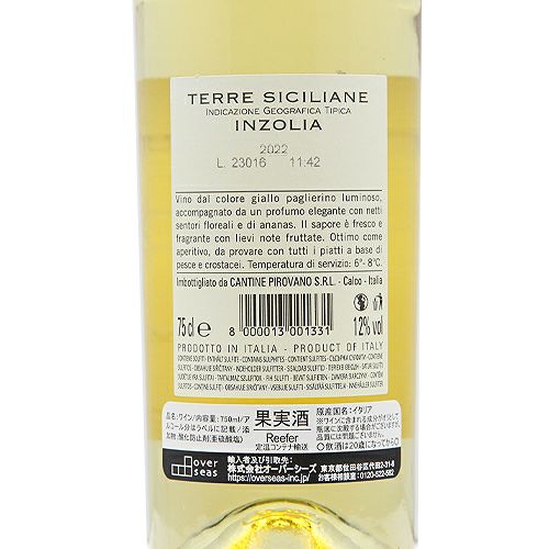 他の画像を見る 【料理にレモンを絞るイメージで】 ノビリ ディ トリナクリア インツォリア 2022 カンティネ ピローヴァノ 白ワイン 定価 ¥ 1,540 のところ 価格 ¥ 1,309 税込 会員特別価格 ¥ 1,309 税込 カートに入れる お気に入りに登録する