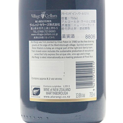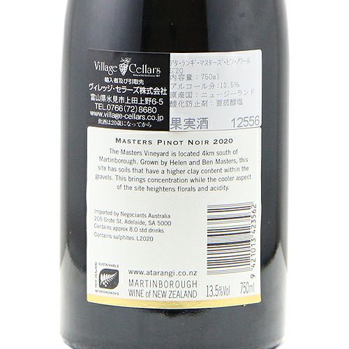 他の画像を見る 【門出を祝うプレゼントに!】 アタ ランギ マクローン ヴィンヤード ピノ ノワール 2020 赤ワイン 定価 ¥ 16,500 のところ 価格 ¥ 13,750 税込 会員特別価格 ¥ 13,750 税込 アタランギ カートに入れる お気に入りに登録する