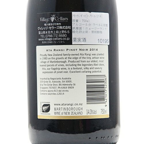 他の画像を見る 【パーカーポイント93点】 アタ ランギ ピノ ノワール 2014 赤ワイン 定価 ¥ 0 のところ 価格 ¥ 13,200 税込 会員特別価格 ¥ 13,200 税込 カートに入れる お気に入りに登録する