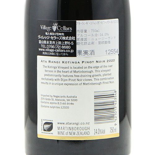 他の画像を見る 【パーカーポイント94+点】 アタ ランギ コティンガ ピノ ノワール 2020 赤ワイン 定価 ¥ 0 のところ 価格 ¥ 14,355 税込 会員特別価格 ¥ 14,355 税込 カートに入れる お気に入りに登録する