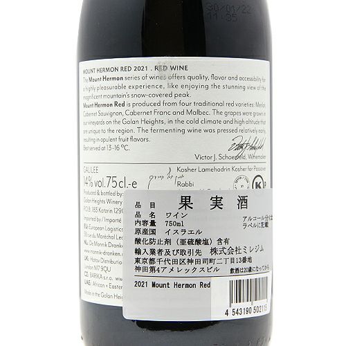 他の画像を見る 【イスラエルワインとして日本で最も有名!?】 ヤルデン マウント ヘルモン レッド 2023 赤ワイン 定価 ¥ 3,630 のところ 価格 ¥ 3,025 税込 会員特別価格 ¥ 3,025 税込 カートに入れる お気に入りに登録する