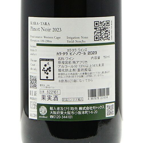 他の画像を見る 【全房発酵のフレッシュさが際立つ!】 カラ タラ ピノ ノワール 2023 赤ワイン 定価 ¥ 3,630 のところ 価格 ¥ 3,025 税込 会員特別価格 ¥ 3,025 税込 カートに入れる お気に入りに登録する