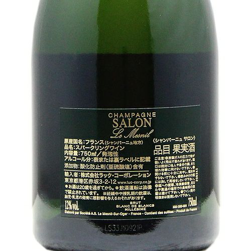 他の画像を見る 【パーカーポイント96点】 サロン ブラン ド ブラン 2007 正規品 スパークリング 定価 ¥ 0 のところ 価格 ¥ 198,550 税込 会員特別価格 ¥ 198,550 税込 カートに入れる お気に入りに登録する