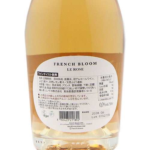 他の画像を見る 【飲めない人・飲まない人の特別に】 フレンチ ブルーム ロゼ NV《賞味期限2028年6月》 定価 ¥ 7,885 のところ 価格 ¥ 6,480 税込 会員特別価格 ¥ 6,480 税込 カートに入れる お気に入りに登録する