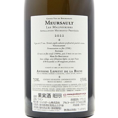 他の画像を見る 【昨ヴィンテージは発売即完売!】 ムルソー レ マルポワリエ 2022 定価 ¥ 33,000 のところ 価格 ¥ 33,000 税込 会員特別価格 ¥ 33,000 税込 在庫切れ 詳細を見る お気に入りに登録する