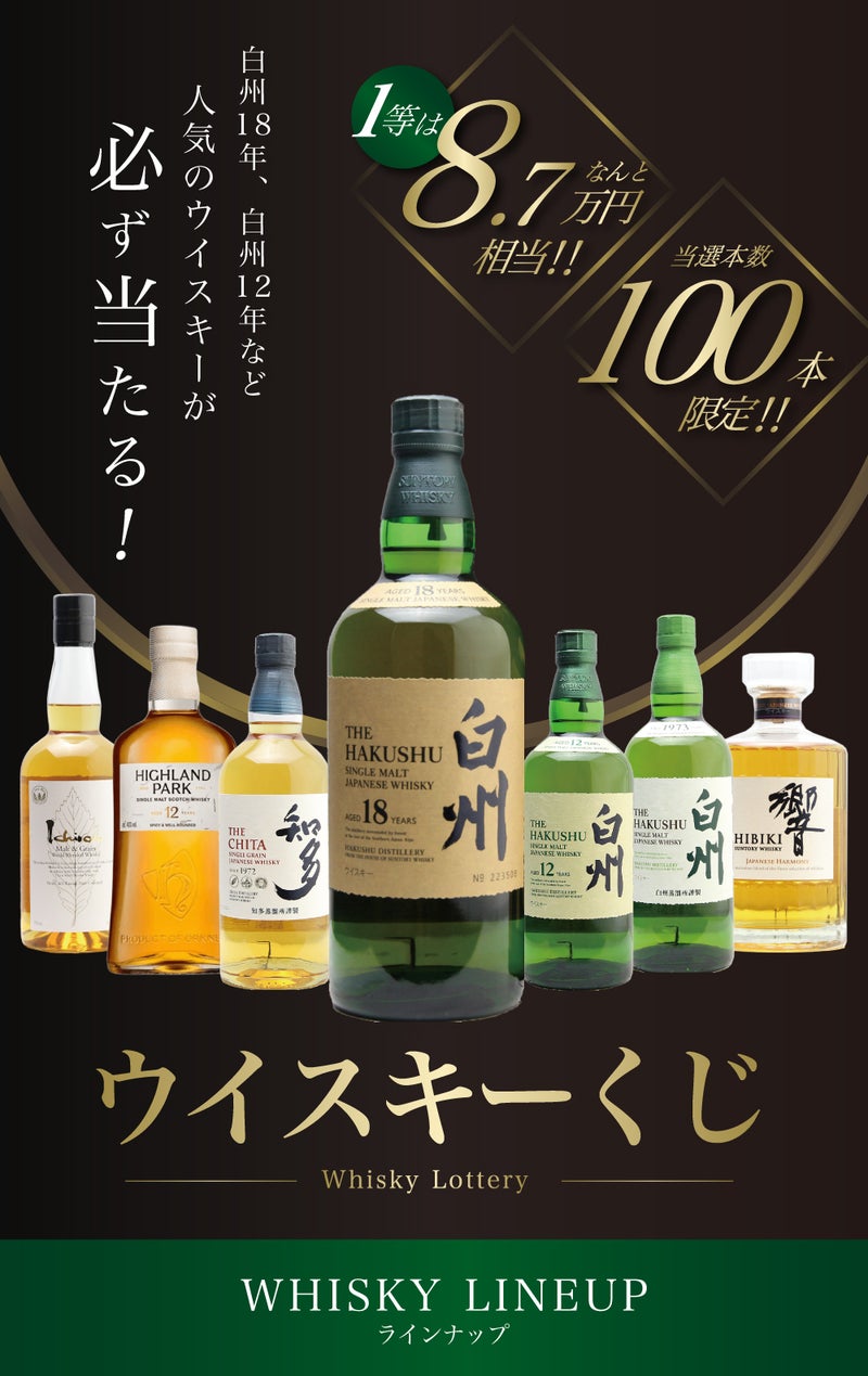 【白州18年・白州12年・白州が当たる!ウイスキーくじ】 【第26弾】白州18年くじ!高確率・ウイスキーガチャ・1/100で白州18年・1/20で白州12年・1/10で白州が当たる!100本で高確率!!65%でジャパニーズウイスキーが当たる!!