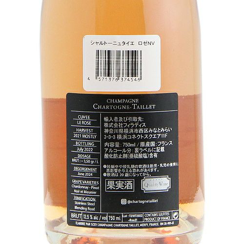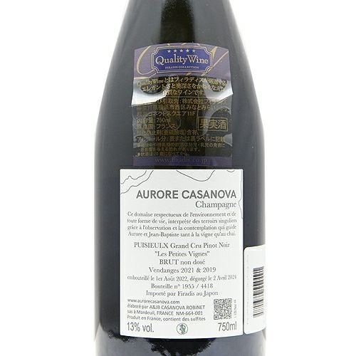 多くのキュベが単一ヴィンテージ、3年以上の熟成で出荷されるものの、ヴィンテージシャンパンの申請をしていないため扱いはノンヴィンテージ。バックラベルに詳細が記載されます。