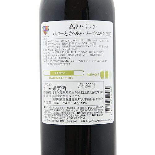 他の画像を見る 【2019年の恵み、芳醇な黒果実とトースト香が響き合う】 高畠バリック メルロー&カベルネ ソーヴィニヨン 2020 高畠ワイナリー 赤ワイン 定価 ¥ 0 のところ 価格 ¥ 3,410 税込 会員特別価格 ¥ 3,410 税込 カートに入れる お気に入りに登録する