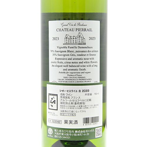 他の画像を見る 【この価格でギド・アシェット三ツ星!】 シャトー ピエライユ ブラン 2024 白ワイン 定価 ¥ 2,640 のところ 価格 ¥ 2,233 税込 会員特別価格 ¥ 2,233 税込 カートに入れる お気に入りに登録する
