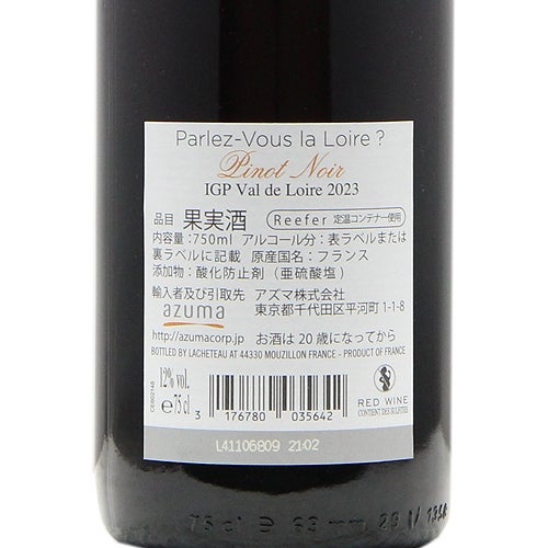 他の画像を見る 【自転車で風を切るようなイメージで】 パルレ ヴ ラ ロワール ルージュ 2023 赤ワイン 定価 ¥ 2,090 のところ 価格 ¥ 1,793 税込 会員特別価格 ¥ 1,793 税込 カートに入れる お気に入りに登録する