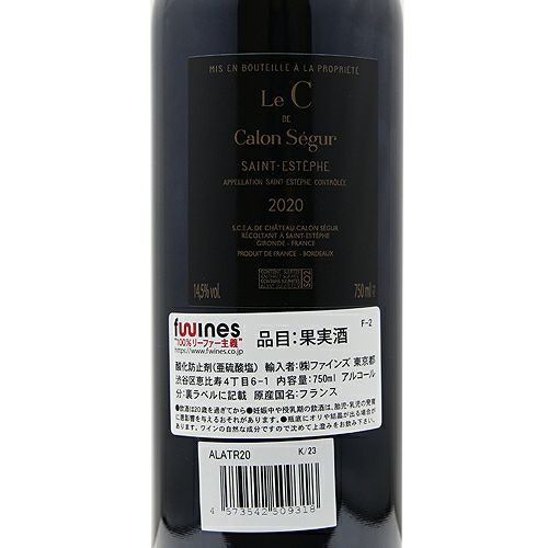 他の画像を見る 【ハートラベルは信頼の証】 ル セー ド カロン セギュール 2020 赤ワイン 定価 ¥ 0 のところ 価格 ¥ 4,950 税込 会員特別価格 ¥ 4,950 税込 カートに入れる お気に入りに登録する