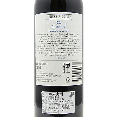 他の画像を見る 【人生を楽しむ食・ワイン・音楽!】 スリーピラーズ ザ グルメ シラーズ 2020 赤ワイン 定価 ¥ 1,375 のところ 価格 ¥ 1,353 税込 会員特別価格 ¥ 1,353 税込 カートに入れる お気に入りに登録する
