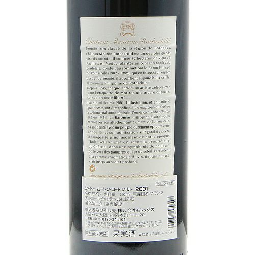 他の画像を見る 【パーカーポイント94点】 シャトー ムートン ロートシルト 2001 赤ワイン 定価 ¥ 0 のところ 価格 ¥ 137,500 税込 会員特別価格 ¥ 137,500 税込 カートに入れる お気に入りに登録する