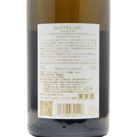 他の画像を見る 【過去の値段に意味などありません。】 モンラッシェ マルキ ド ラギッシュ グラン クリュ 2020 メゾン ジョセフ ドルーアン 白ワイン 定価 ¥ 165,000 のところ 価格 ¥ 154,000 税込 会員特別価格 ¥ 154,000 税込 在庫切れ 詳細を見る お気に入りに登録する
