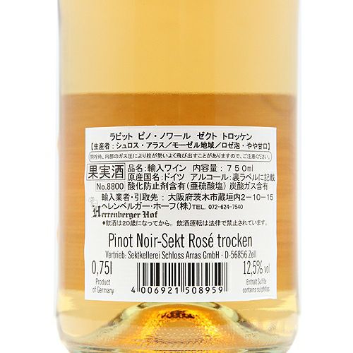 他の画像を見る 【見た目もテンション上がるパーティーの始まり】 ラビット ゼクト トロッケン ピノ ロゼ NV スパークリング 定価 ¥ 2,090 のところ 価格 ¥ 1,793 税込 会員特別価格 ¥ 1,793 税込 カートに入れる お気に入りに登録する
