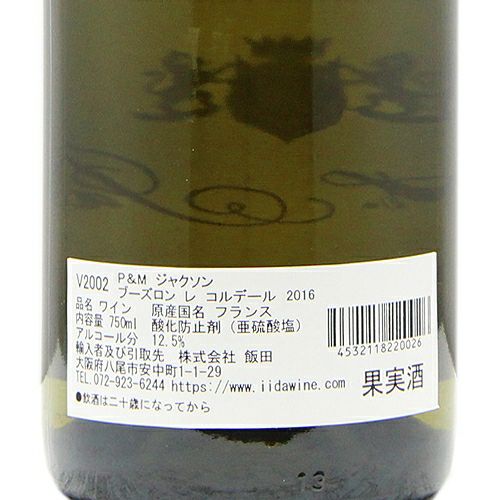 他の画像を見る 【熟成アリゴテの面白さ!】 ブーズロン レ コルデール 2016 P&M ジャクソン 白ワイン 定価 ¥ 5,280 のところ 価格 ¥ 4,598 税込 会員特別価格 ¥ 4,598 税込 在庫切れ 詳細を見る お気に入りに登録する