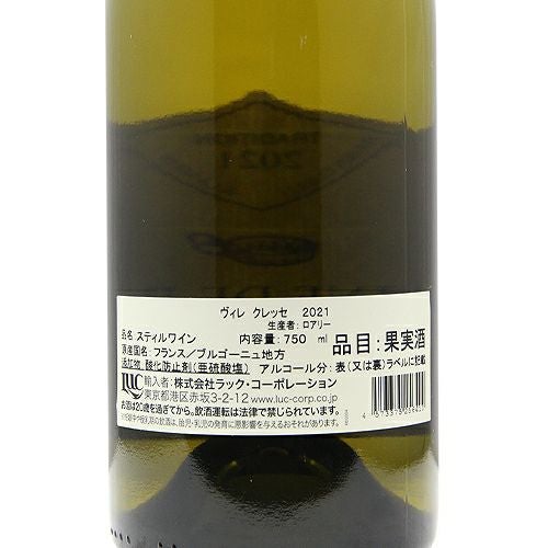 他の画像を見る 【樽熟成なしなのに驚きのボリューム感!】 ヴィレ クレッセ 2022 ロアリー 白ワイン 定価 ¥ 5,500 のところ 価格 ¥ 4,213 税込 会員特別価格 ¥ 4,213 税込 カートに入れる お気に入りに登録する