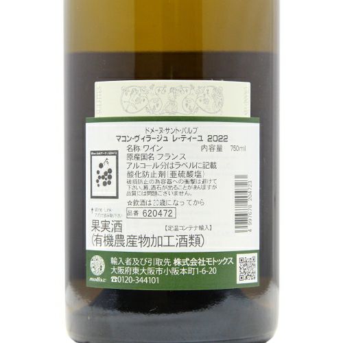 他の画像を見る 【ビオディナミから生まれる熟れた果実のような白ワイン】 マコン ヴィラージュ レ ティーユ 2022 ドメーヌ サント バルブ 白ワイン 定価 ¥ 4,180 のところ 価格 ¥ 3,410 税込 会員特別価格 ¥ 3,410 税込 カートに入れる お気に入りに登録する