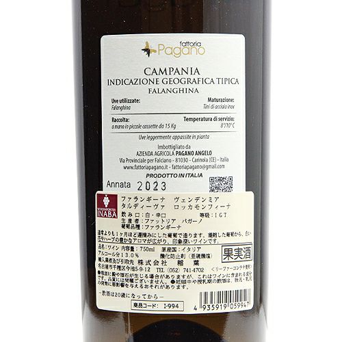 他の画像を見る 【樹上乾燥で深みを得た辛口ファランギーナ】 ファランギーナ ヴェンデンミア タルディーヴァ ロッカモンフィーナ ビアンコ 2023 or 2024 ファットリア パガーノ 白ワイン 定価 ¥ 2,530 のところ 価格 ¥ 2,112 税込 会員特別価格 ¥ 2,112 税込 カートに入れる お気に入りに登録する