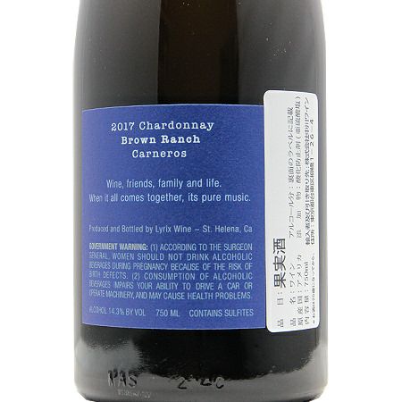 他の画像を見る 【これ知ってれば、接待のとき安心!】 リリックス シャルドネ ブラウン ランチ カーネロス ナパ ヴァレー 2017 白ワイン 定価 ¥ 22,000 のところ 価格 ¥ 18,810 税込 会員特別価格 ¥ 18,810 税込 ナパヴァレー ナパバレー ナパ・ヴァレー ナパ・バレー 音符ラベル オンプ カートに入れる お気に入りに登録する