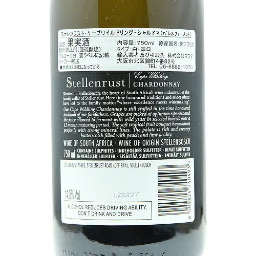 他の画像を見る 【単なる樽シャルドネではありません!】 ステレンラスト ケープワイルドリング シャルドネ 2023 バレル ファーメンティド 白ワイン 定価 ¥ 3,630 のところ 価格 ¥ 3,036 税込 会員特別価格 ¥ 3,036 税込 カートに入れる お気に入りに登録する