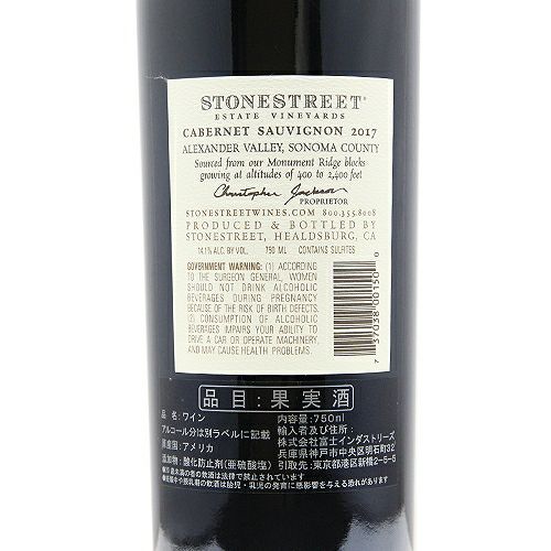 他の画像を見る 【ちょい熟ヴィンテージが特価の掘り出し物!】 ストーンストリート エステート カベルネ ソーヴィニヨン 2017 赤ワイン 定価 ¥ 14,300 のところ 価格 ¥ 8,580 税込 会員特別価格 ¥ 8,580 税込 在庫切れ 詳細を見る お気に入りに登録する