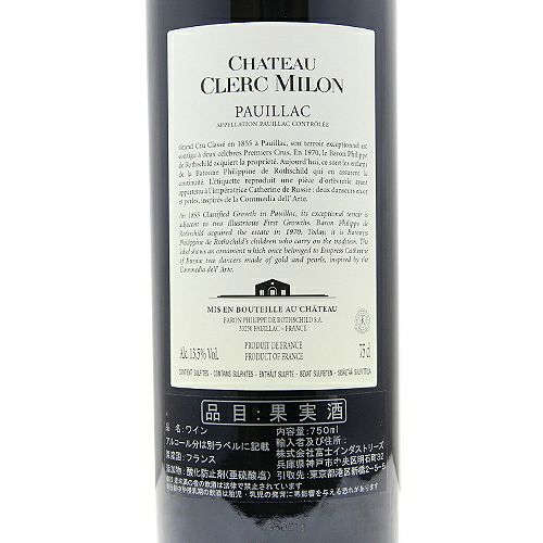 他の画像を見る 【パーカーポイント93+点】 シャトー クレール ミロン 2015 赤ワイン 定価 ¥ 0 のところ 価格 ¥ 18,370 税込 会員特別価格 ¥ 18,370 税込 カートに入れる お気に入りに登録する