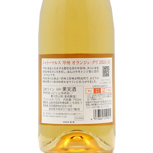 他の画像を見る 【今マルスワインで一番の売れっ子♪】 甲州 オランジュ グリ 2024 マルスワイン 白ワイン 定価 ¥ 1,747 のところ 価格 ¥ 1,738 税込 会員特別価格 ¥ 1,738 税込 カートに入れる お気に入りに登録する