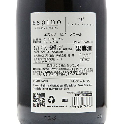 他の画像を見る 【チリ生まれのシャブリ育ち!?】 エスピノ ピノノワール 2023 ウィリアム フェーヴル チリ 赤ワイン 定価 ¥ 2,310 のところ 価格 ¥ 1,925 税込 会員特別価格 ¥ 1,925 税込 カートに入れる お気に入りに登録する